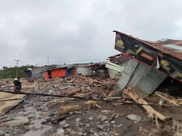 Bangunan kios dan rumah warga rusak diterjang banjir bandang di salah satu wilayah Aceh. Material kayu, lumpur, dan puing bangunan menutup akses jalan, sementara pemerintah memperpanjang status tanggap darurat di 11 kabupaten guna mempercepat penanganan dan pemulihan pascabencana (Foto/RRI)