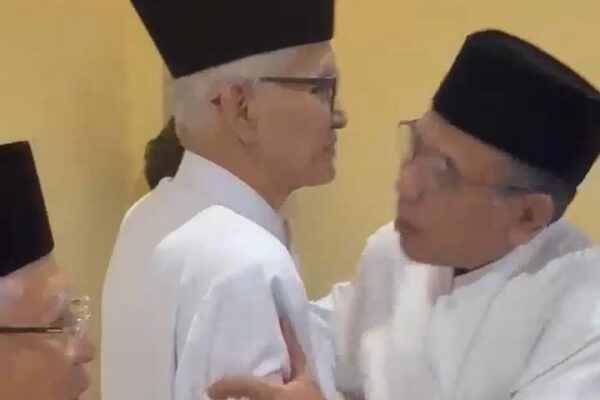 Rois Aam PBNU KH. Miftahul Akhyar dan Ketua Umum PBNU KH. Yahya Cholil Staquf tampak berpelukan dalam pertemuan yang berlangsung…