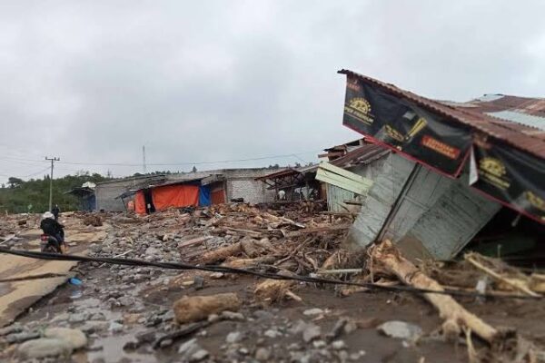 Bangunan kios dan rumah warga rusak diterjang banjir bandang di salah satu wilayah Aceh. Material kayu, lumpur, dan puing bangunan…